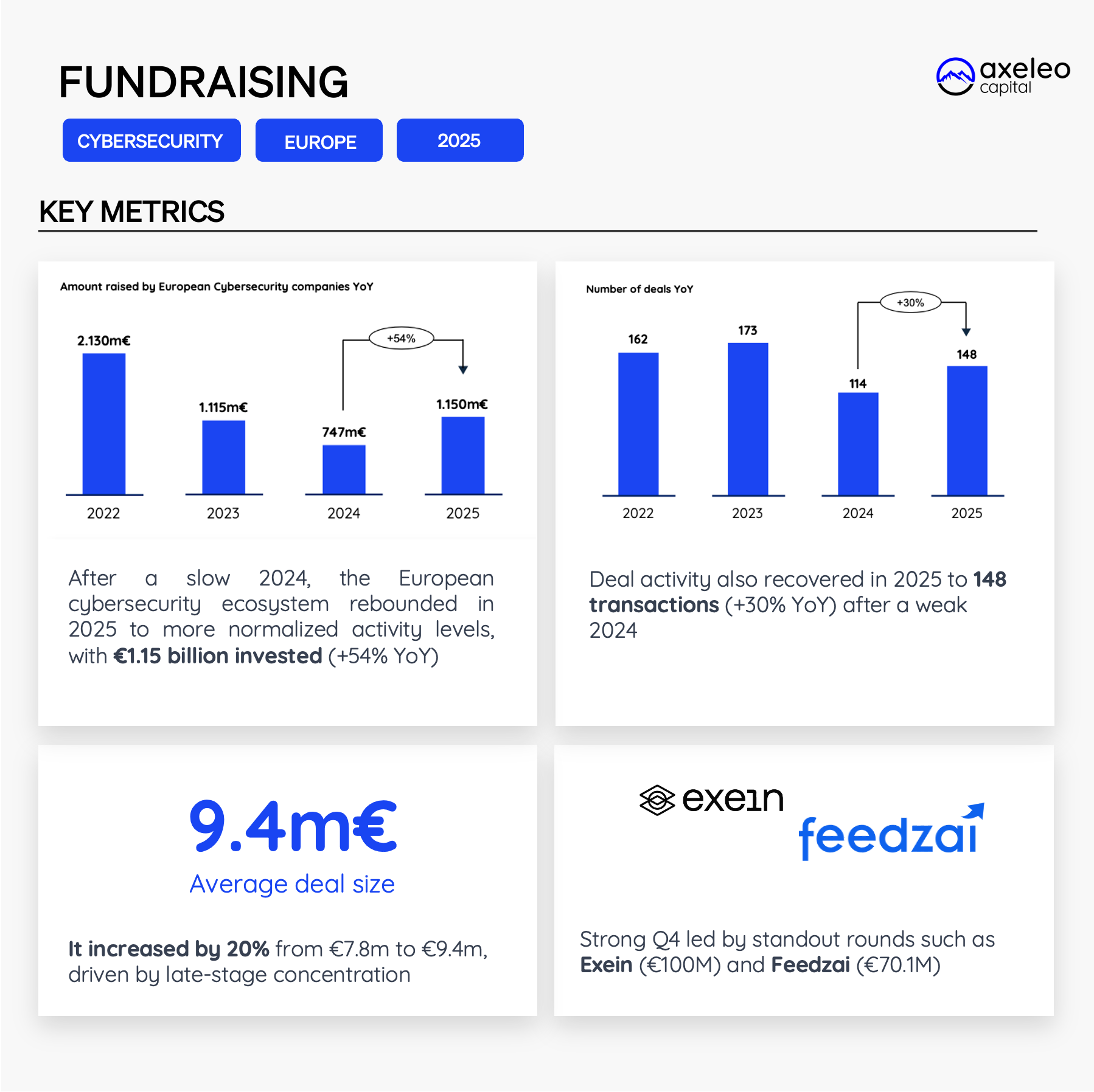 European cybersecurity startups raised €1.15bn in 2025, across 148 deals. That’s a strong rebound: +54% in capital deployed and +30% in deal count year-on-year.