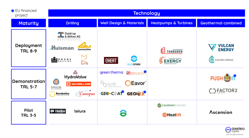 Given our fund’s thesis on hardware technologies, this article focuses on technologies ranging from drilling to surface development. A good addition to our perspective would be the recent EDF Pulse Ventures mapping, also covering exploration technology deemed crucial to bring less uncertainty in project development.
